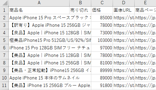 メルカリの商品情報を収集してCSVファイルに出力します。